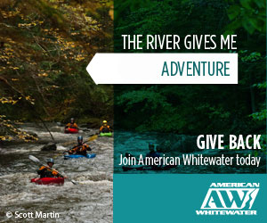 <a href="https://www.americanwhitewater.org/content/Membership/join-aw?utm_source=supporter_website&utm_medium=banner&utm_content=support_aw3_300_by_250.jpg&utm_campaign=join_or_renew"><img src="http://www.americanwhitewater.org/resources/repository/support_aw3_300_by_250.jpg" alt="support_aw3_300_by_250" width="300" height="250" /></a>